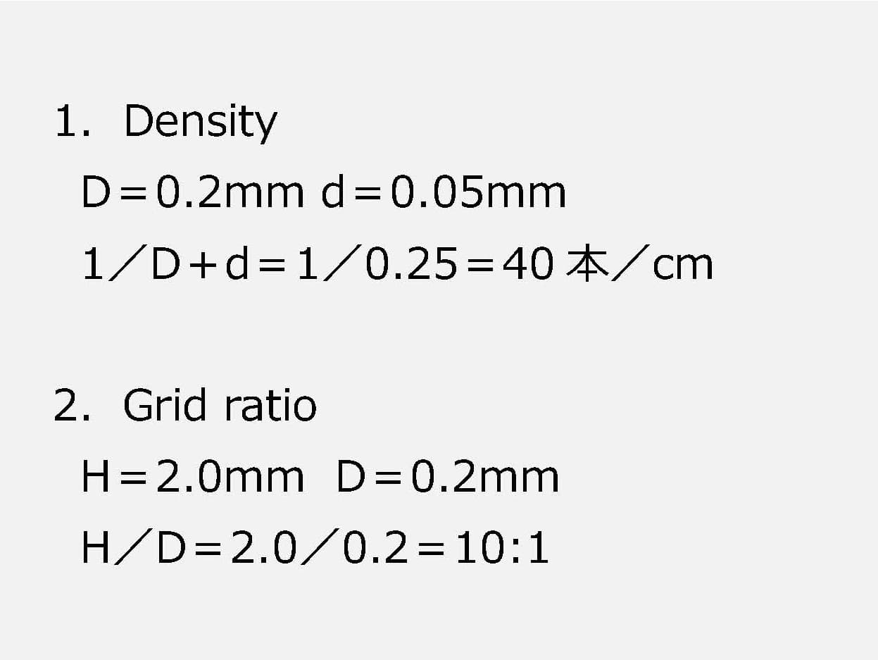 For example, a 10:1 ratio is recommended at 60 lines/cm, and an 8:1 ratio is recommended at 40 lines/cm. The lead content rate is almost the same under both specifications.