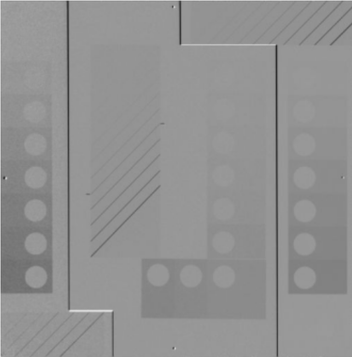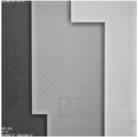 - ワイヤーチャートで空間分解能を、アルミステップでコントラスト分解能とダイナミックレンジをチェック。